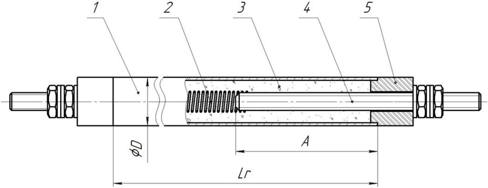 Двухконцевой ТЭН (рис.1) трубчатый электронагреватель круглого сечения представляет нагревательный элемент (2) (спираль или несколько спиралей из сплава с высоким сопротивлением) изолированный от металлической оболочки (1) спрессованным электроизоляционным наполнителем – периклазом (3) (MgO). Для предохранения от попадания влаги из окружающей среды торцы ТЭН герметизируют. Контактные стержни (4) изолируются от оболочки диэлектрическими изоляторами (5).