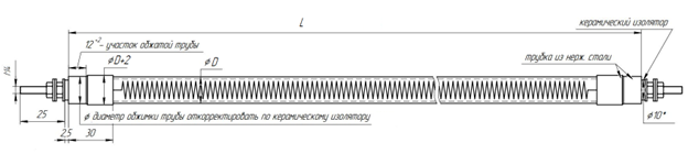 Представляет нагревательный элемент (спираль или несколько спиралей из сплава с высоким сопротивлением) установленный в кварцевую трубку требуемой длины и диаметра.